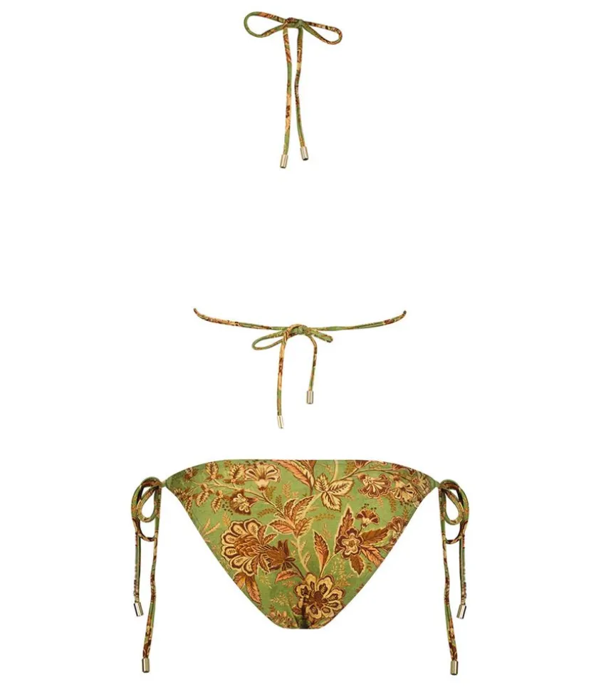 Découvrez L’Ensemble De Bikini Italien Confectionné En Lycra De La Marque Zimmermann, Comprenant Un Haut Triangle Orné De Chevrons Au Crochet Et Un Bas À Coupe Basse Avec Des Liens Latéraux.