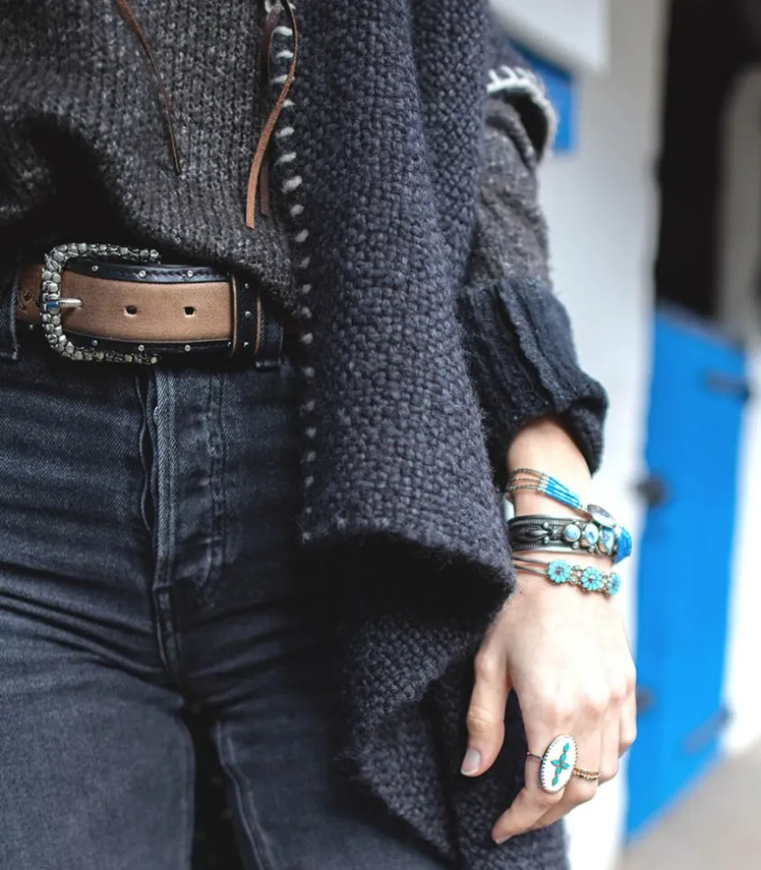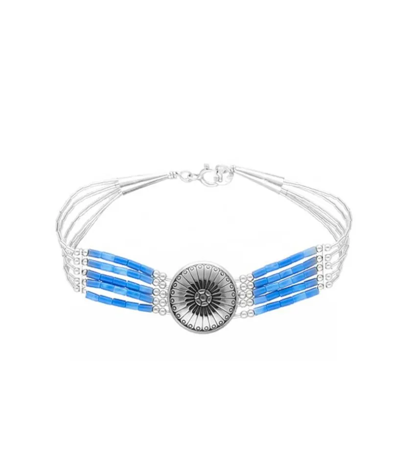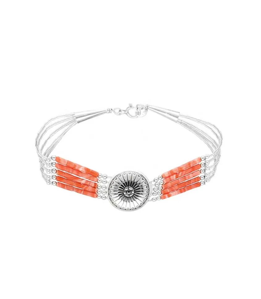 Bracelet Éthnique Navajo De La Marque Harpo À Cinq Rangs Composé De Perles/Pierres Et D’Un Médaillon Central En Argent Massif.