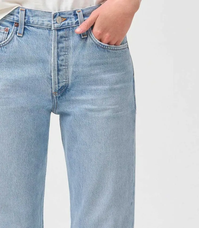 Jean Wyman De La Marque Agolde Proposé Dans Un Coloris Dimension, Un Denim Clair Légèrement Délavé D’Inspiration Vintage.