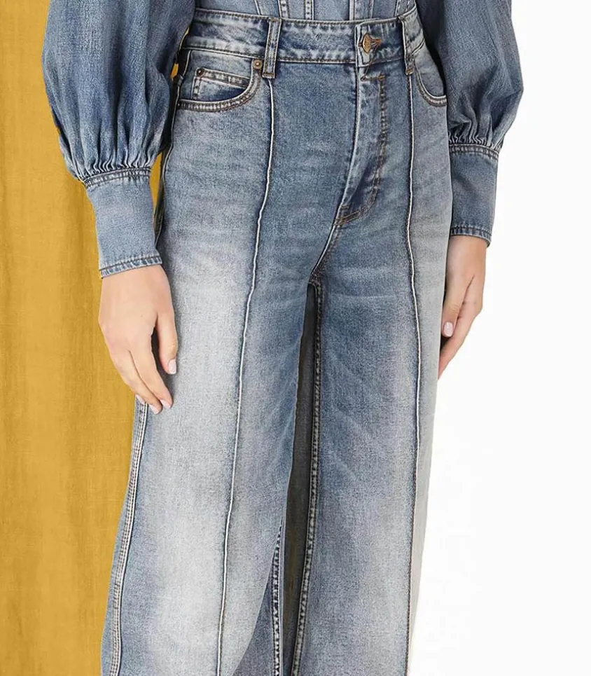 Jean Wide Leg De La Marque Zimmermann, Avec Une Taille Haute, Une Jambe Évasée Et Une Couture Verticale En Relief Pour Allonger La Jambe.
