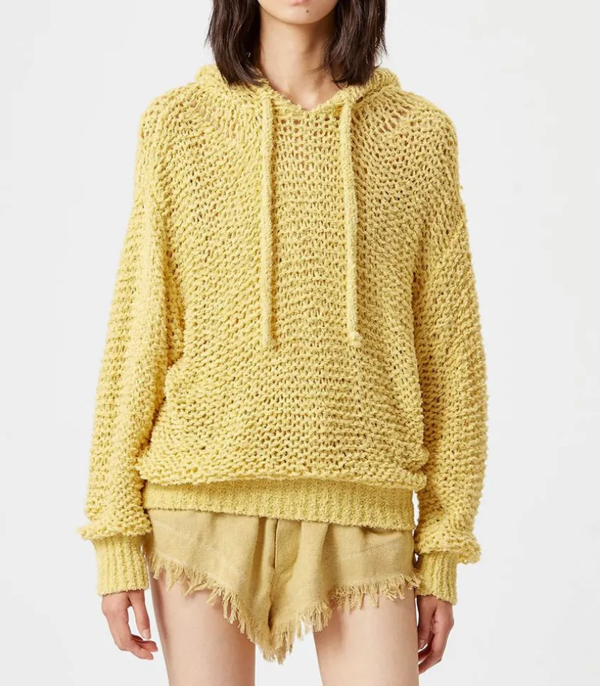 Isabel Marant Imagine Pour Sa Ligne Marant Étoile Le Pull Idony, Une Pièce À Capuche Réalisée En Maille Dans Un Pétillant Coloris Yellow.