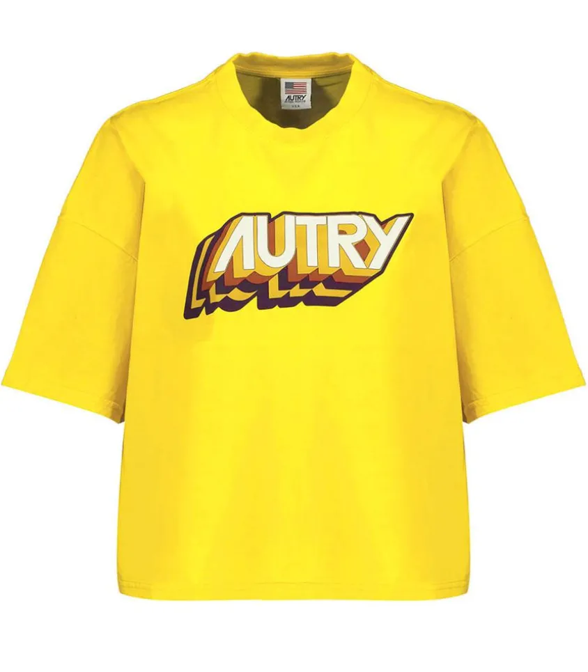 Tee-Shirt Aerobic Jaune De La Marque Autry. Conçu En Coton, Ce Modèle Aux Accents Rétro Comprend Un Logo « Autry » Au Centre Venant Contraster Son Pétillant Coloris Jaune.
