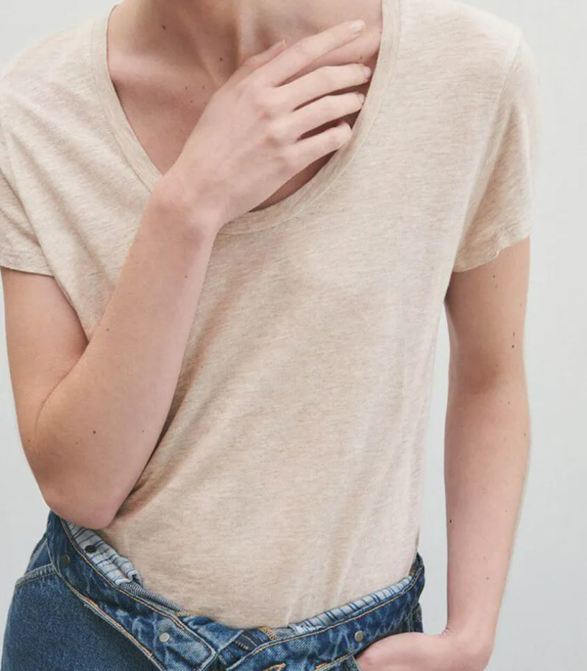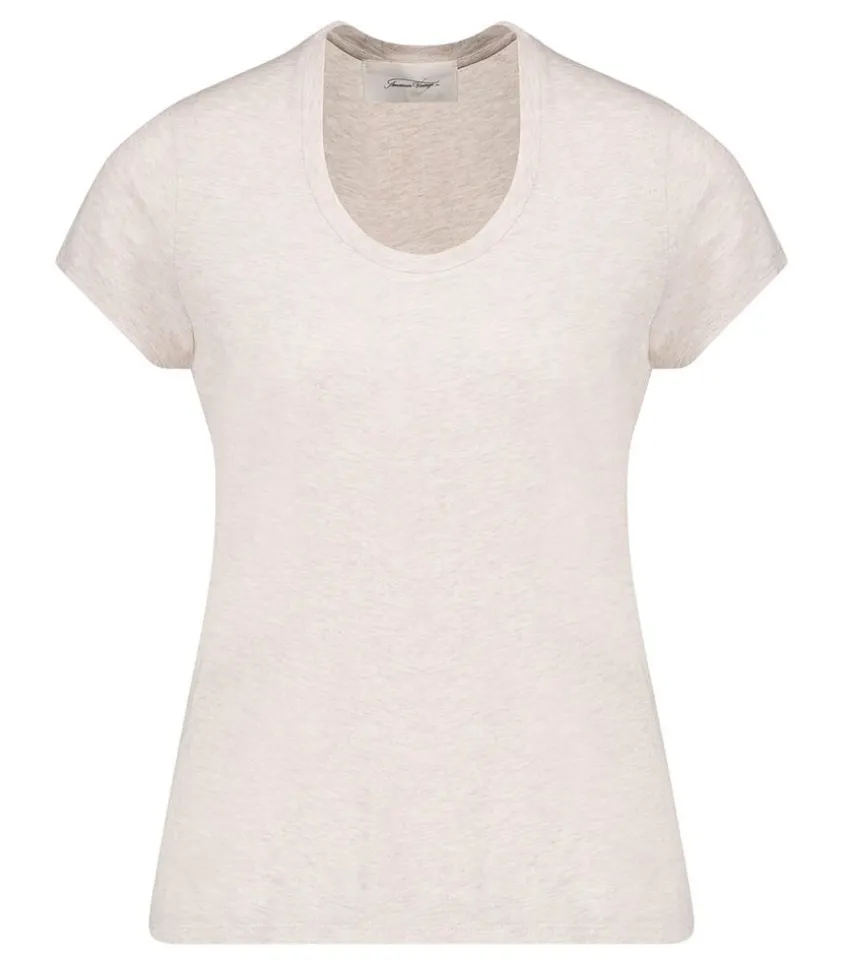 Tee-Shirt Jacksonville Crème Chiné American Vintage, Le Modèle Le Plus Iconique De La Maison. On L’Aime Pour Sa Simplicité Et Ses Finitions Modes.