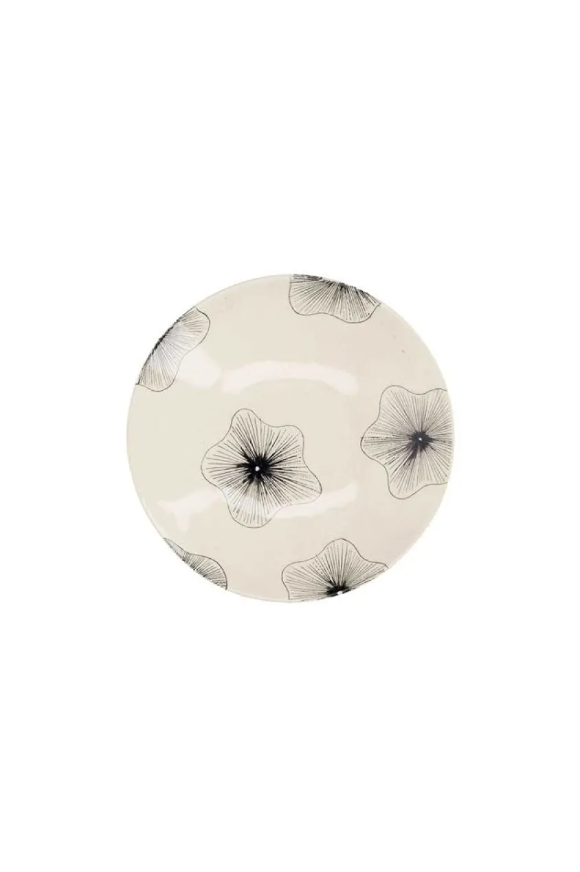 Assiette Creuse En Céramique Beige Recouverte De Coraux Noirs.