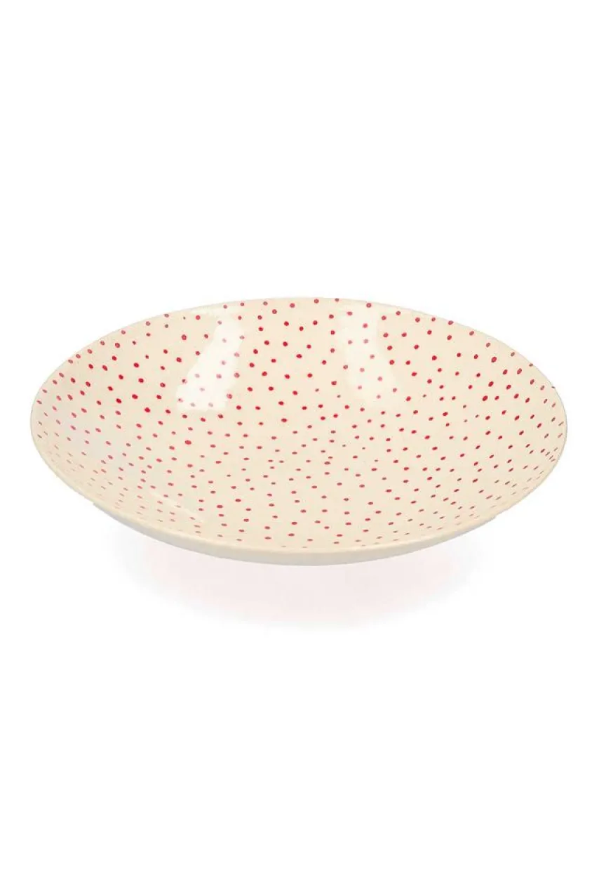 Assiette Creuse En Céramique Beige Recouverte De Petits Pois Rouges.