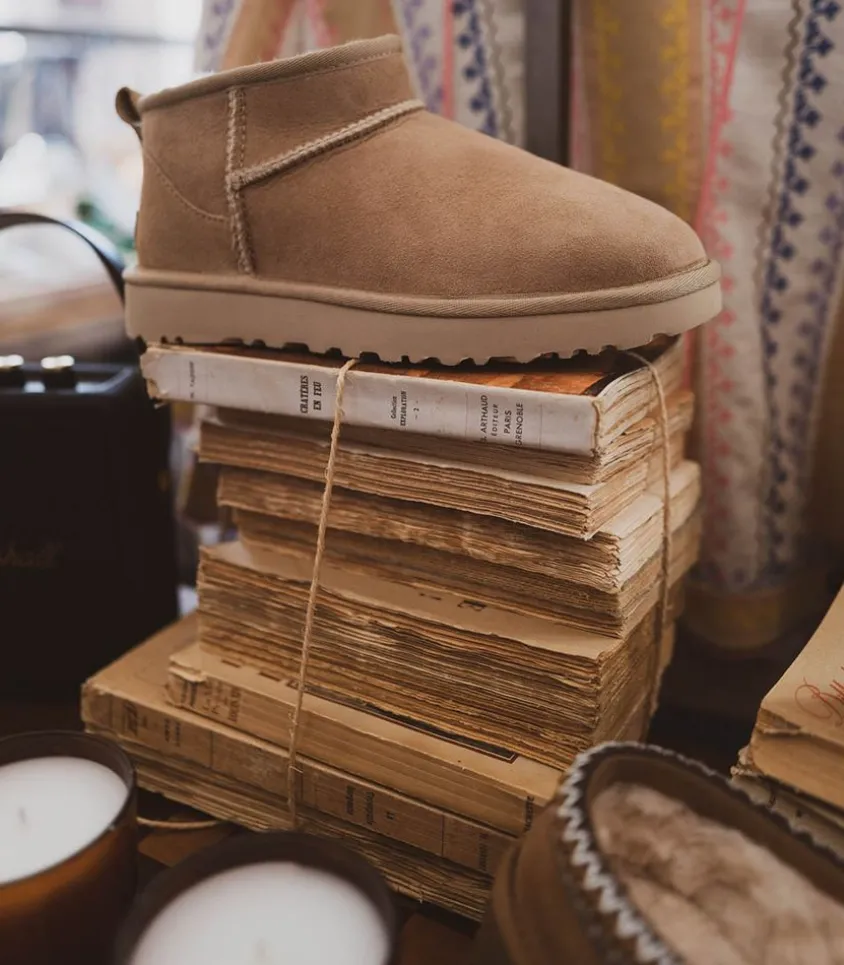 La Bottine Classic Ultra Mini Daim Est Un Modèle Polyvalent Facile À Enfiler Et À Retirer. Cette Chaussure Intègre Tous Les Éléments Appréciés De La Version Originale, Notamment La Peau De Mouton Emblématique, La Doublure Ultradouce Uggplush™, Ainsi Qu’Une Semelle Souple Et Légère. Ce Modèle S’Adapte À Toutes Les Tenues, Permettant De Créer Des Looks Variés Selon Vos Préférences.