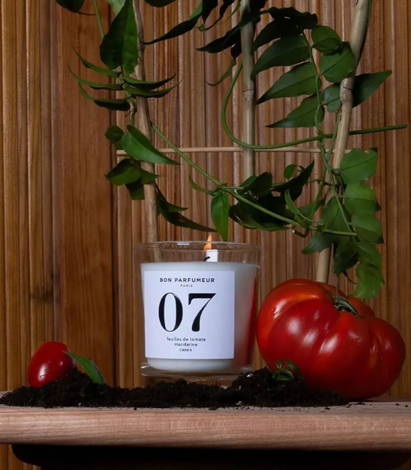 Bougie Parfumée 07 Feuilles De Tomate, Mandarine Et Cassis De La Marque Bon Parfumeur. Son Odeur Évoque Une Matinée À La Campagne, Au Coeur D’Une Nature Luxuriante. Elle Dévoile Des Notes Herbacées Rappellant La Feuille De Tomate Frottée Sur Les Doigts, De La Menthe Et De L’Estragon Qui Renforce Son Arôme Végétal. La Mandarine Et Le Cassis Viennent Dynamiser Le Tout Avec Des Notes Plus Fruitées Et Acidulées. Le Patchouli Apporte Une Note Boisée Et Profonde.