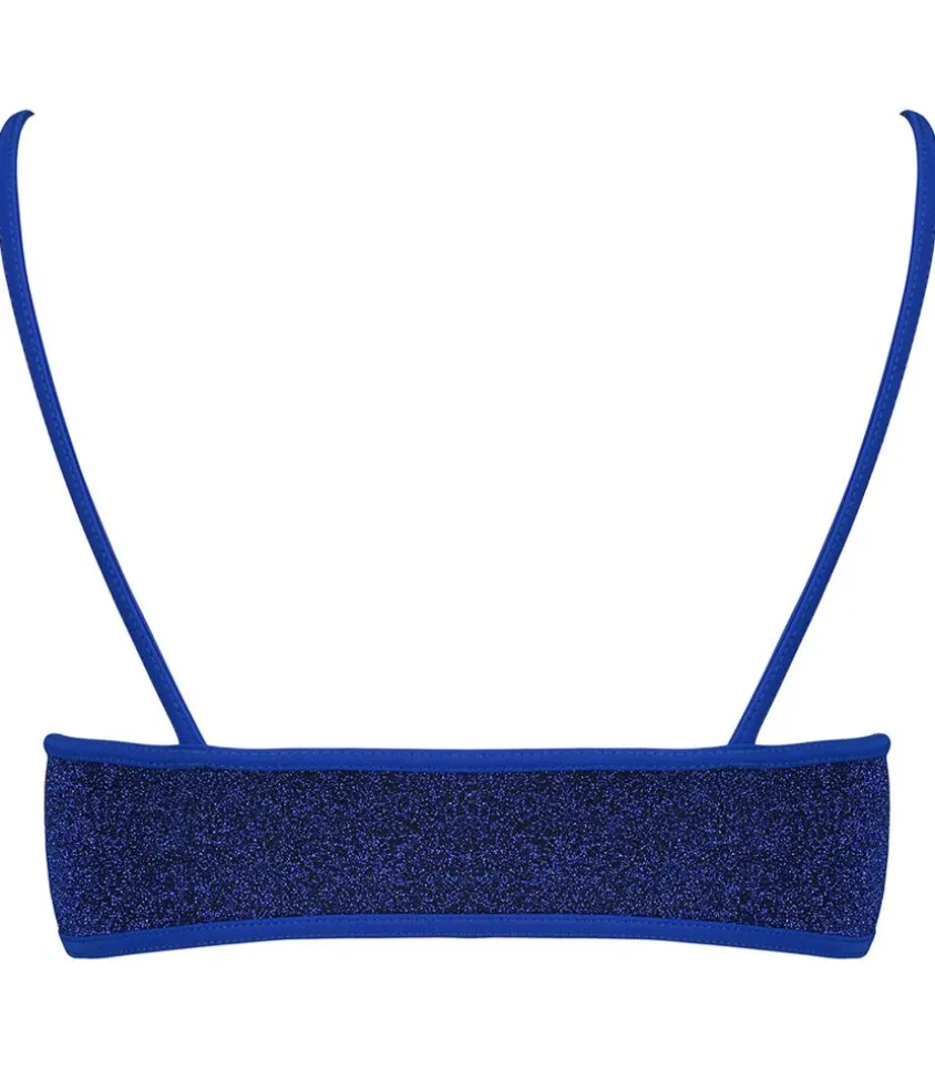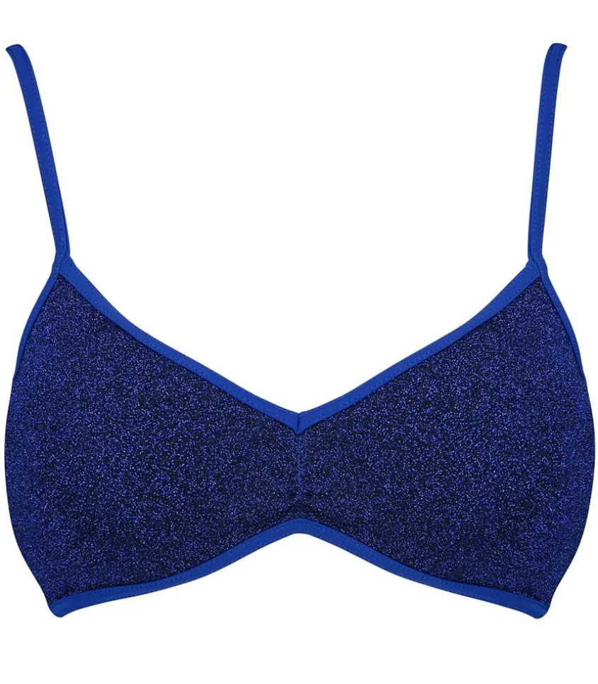 Brassière Georges Mousses Amovibles Deep Blue De La Marque La Nouvelle, Conçue Dans Un Joli Tissus Lurex Bleu Nuit Profond Qui Donne Un Côté Sirène À La Silhouette. Sa Forme En V Et Ses Fronces Au Centre De La Poitrine Permettent De La Mettre En Valeur. Mousses Internes Amovibles.