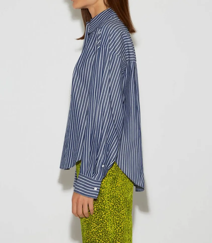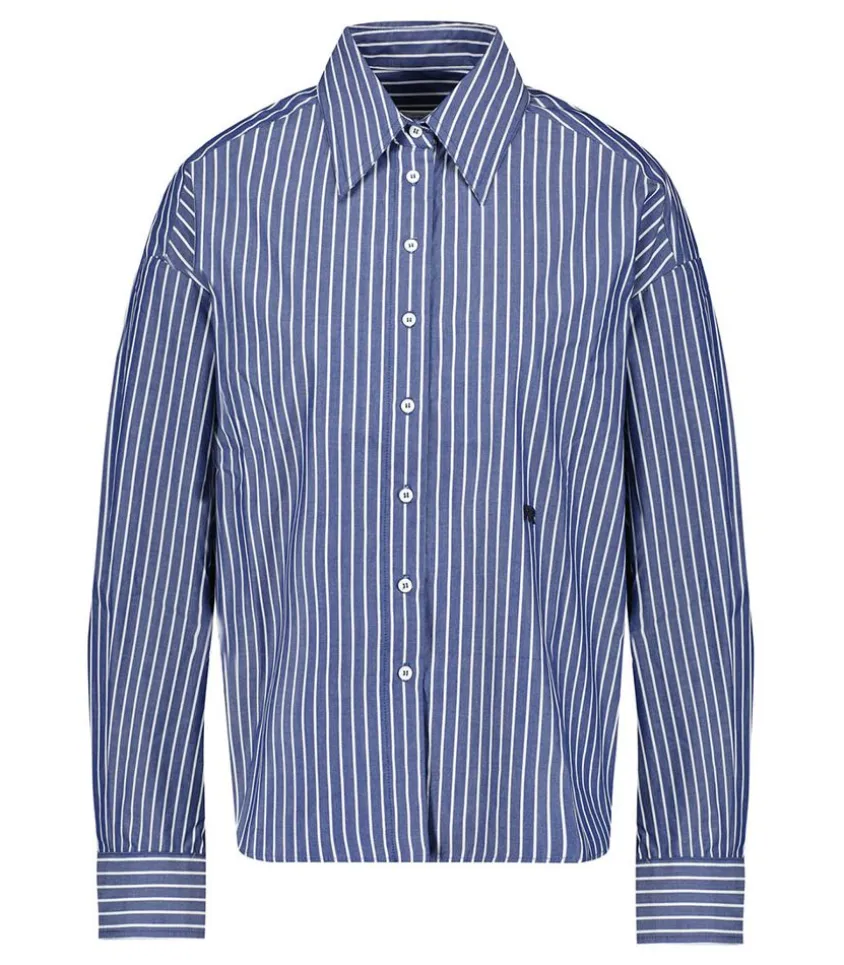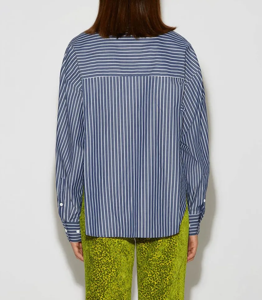 La Chemise Bijou De Roseanna, Du Thème Libertines, S’Inspire Du Style Rock Du Groupe Éponyme De Pete Doherty. Confectionnée En Popeline 100% Coton À Rayures, Dans Un Coloris Marine, Elle Allie Confort Et Élégance. Dotée D’Une Coupe Ample, De Manches Longues Et D’Un Col Chemise, Elle Est Ornée D’Un Patch Brodé Du Logo Double R Sur Le Devant, Ajoutant Une Touche Distinctive À Ce Modèle Classique.