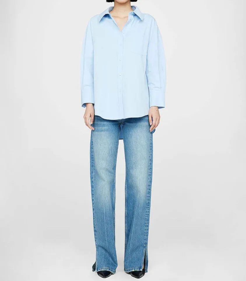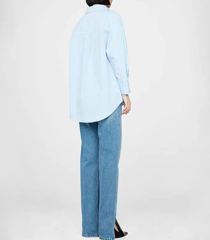 Chemise Mika Blue De La Marque Anine Bing, La Chemise Oversized Indispensable Qui Domine Les Tendances Depuis Plusieurs Saisons. On La Porte En Toute Occasion, Avec Un Short En Jean Ou Un Pantalon Plus Formel.