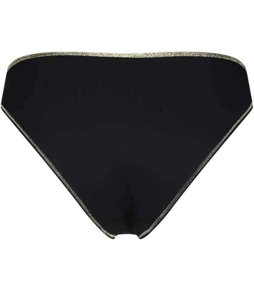 Jolie Petite Culotte Georgia Noir De La Marque De Lingerie La Nouvelle, De Forme Classique Et À La Matière Fine Et Stretch Noire. Liseré En Lurex Doré Sur Le Bord.