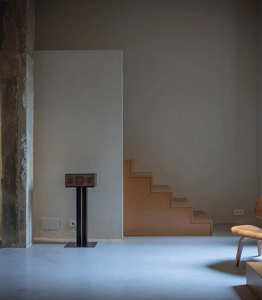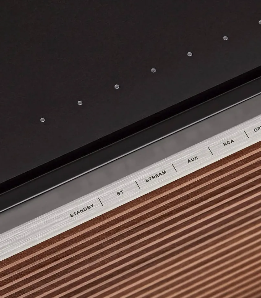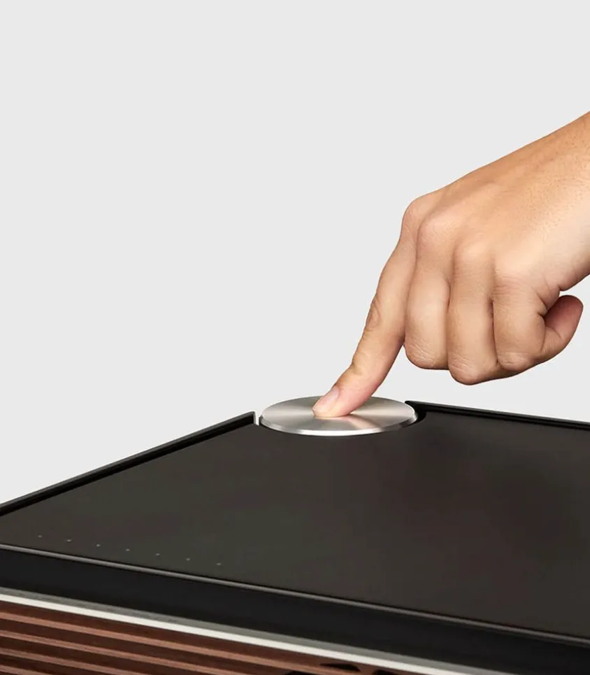 Composée En Matériaux Nobles Tels Que Le Bois De Noyer Massif Et La Bakélite, Cette Enceinte Est Un Véritable Objet De Design Contemporain Et Intemporel À La Fois. Un Unique Bouton En Aluminium Sur Le Dessus Permet De Gérer Toutes Les Commandes, Tout En Restant Discret En S’Intégrant Parfaitement Dans Le Design.