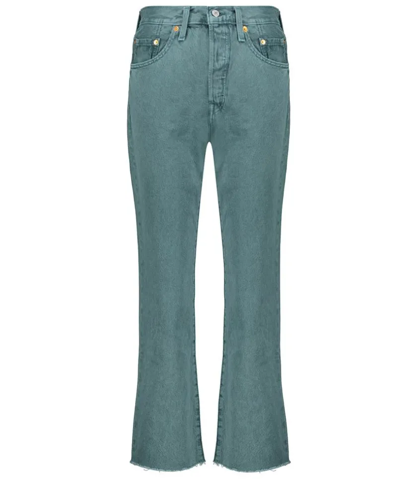 Jean 501® Crop Misty Silver Pine De La Marque Levi’S, L’Iconique 501 En Version Vert Délavé. On L’Imagine Avec Un Tee-Shirt Blanc Et Une Paire De Sneakers.