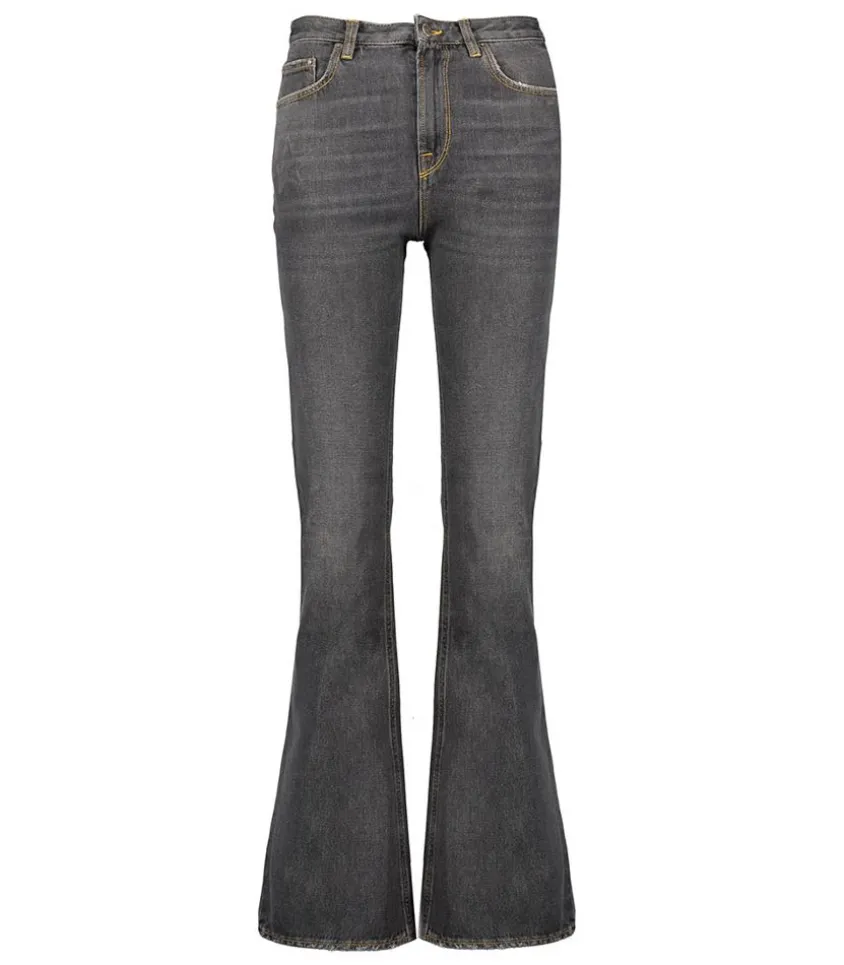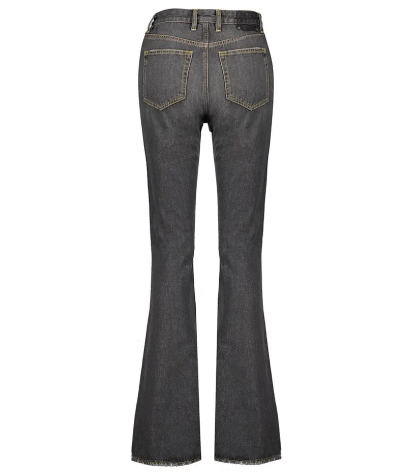 Jean Bootcut Medium Washed Denim De La Marque Golden Goose. Ce Modèle Se Démarque Par Des Surpiqûres Jaunes Contrastantes Et Ses Détails Usés Volontaires Qui Résultent Du Traitement Appliqué Sur Ce Jean Afin De Lui Donner Un Aspect Vintage.