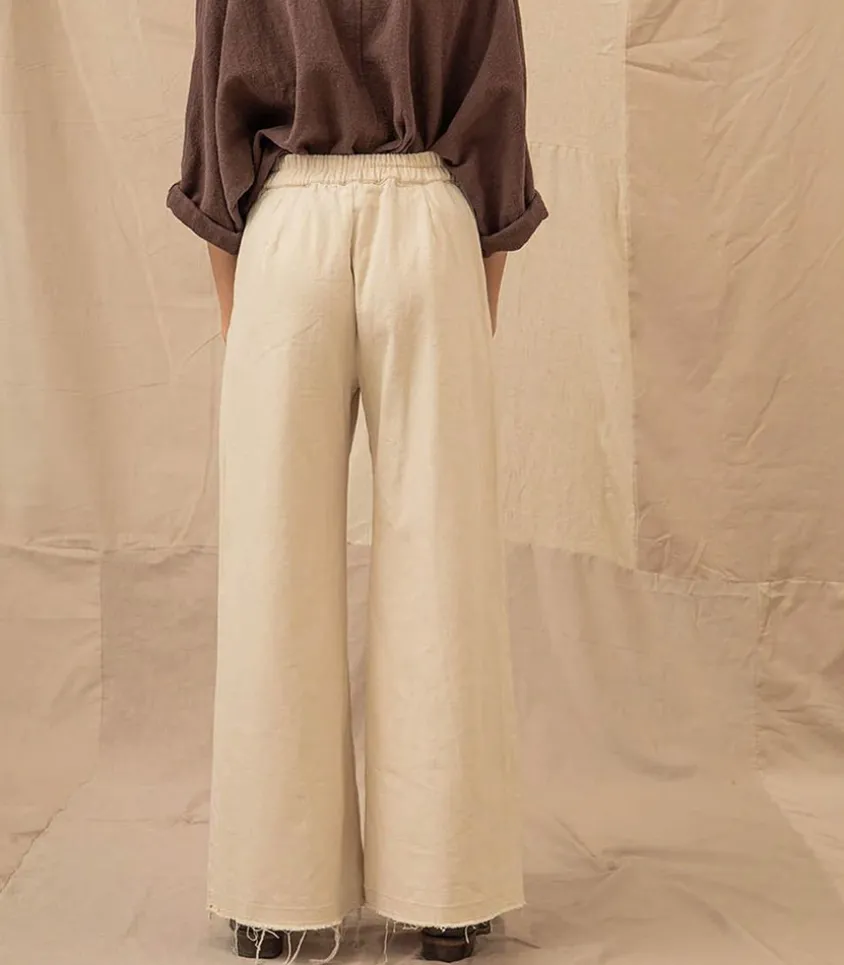 Jean Danny Écru De La Marque La Treille Maison Ensoleillée. Ce Modèle Se Distingue Par Ses Ourlets Francs Et Son Jeu De Surpiqûres Au Niveau De La Taille. On L’Imagine Avec Une Chemise Ample Et Fluide, Ainsi Qu’Une Paire De Sandales.