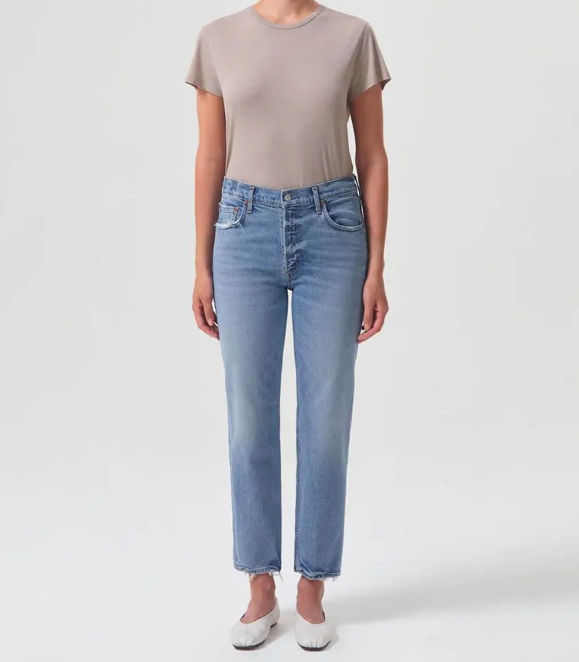 Jean Kye Straight Crop Foreseen De La Marque Agolde, Le Jean Basique Et Intemporel Qui Vous Suivra Saisons Après Saisons. Ce Modèle Séduit Par Sa Coupe Mid-Rise Et Ses Ourlets Usés.