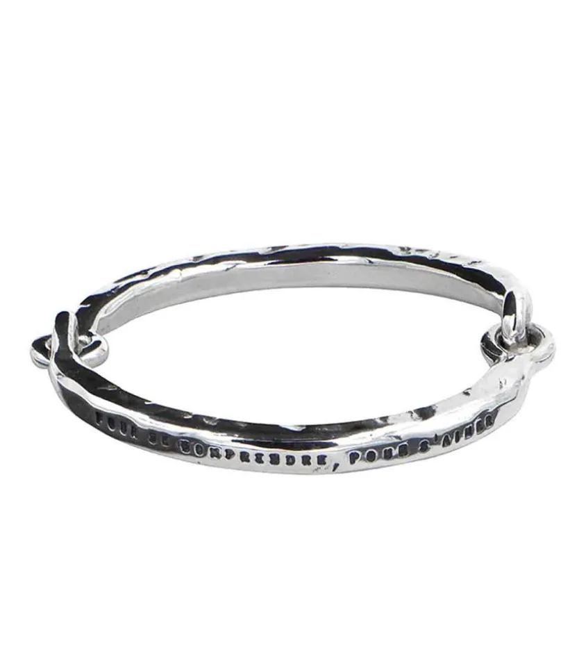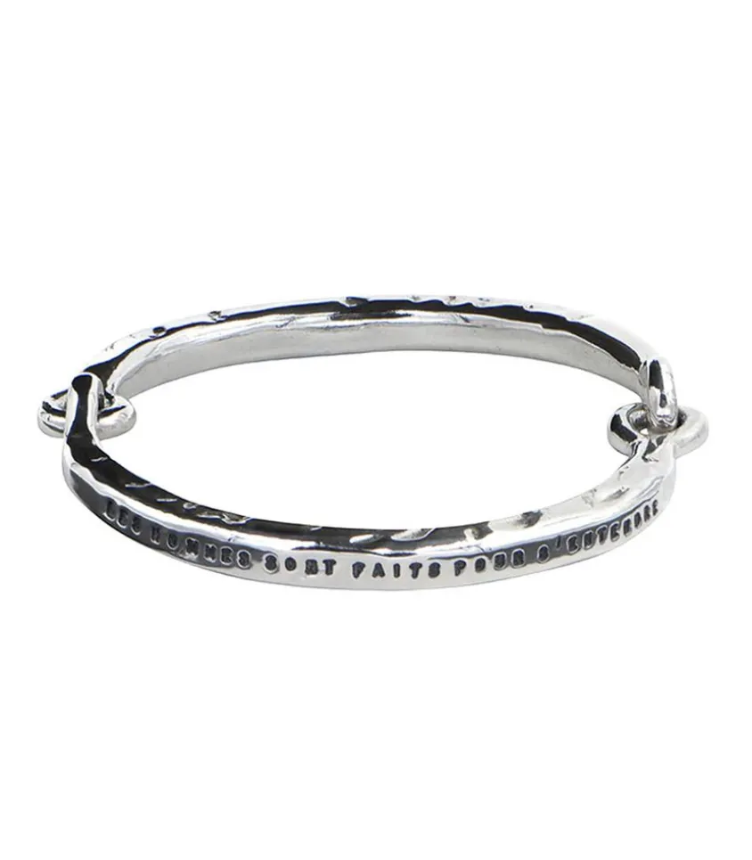 Bracelet Jonc En Argent Signé Serge Thoraval, Composé De Deux Parties Qui S’Accrochent À La Manière De Menottes. Il Présente Un Message Gravé « Les Hommes Sont Faits Pour Se Comprendre, Pour S’Entendre, Pour S’Aimer », Emprunté À Paul Eluard.