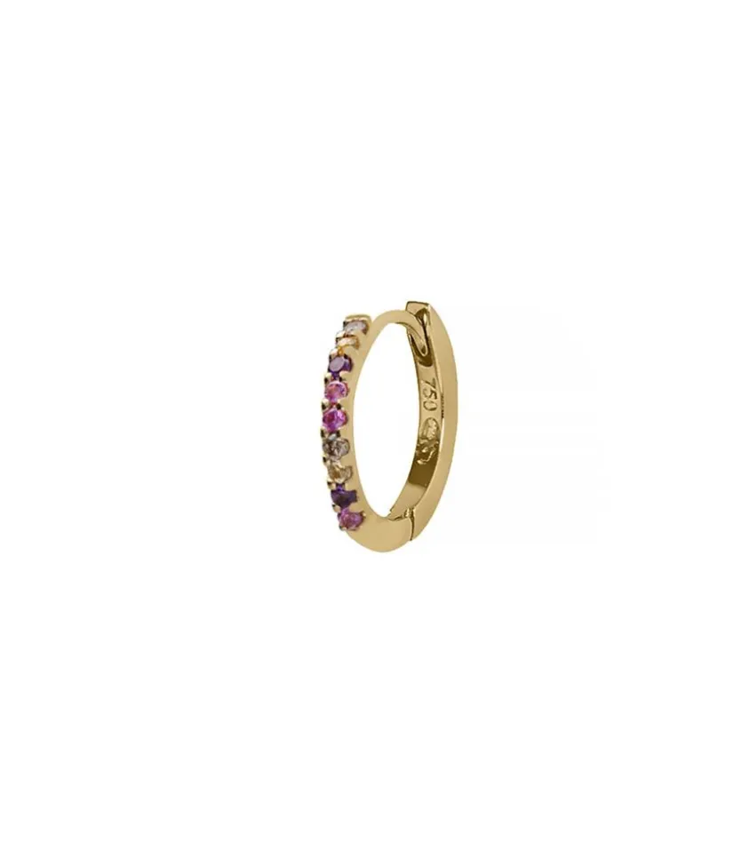 Mini Créole Demi Pavé Multi Pastels De La Marque And…Paris, Une Délicate Boucle D’Oreille Conçue En Or Jaune 18 Carats Demi-Pavée De Saphirs Roses, Améthystes, Diamants Brun Et Citrines.