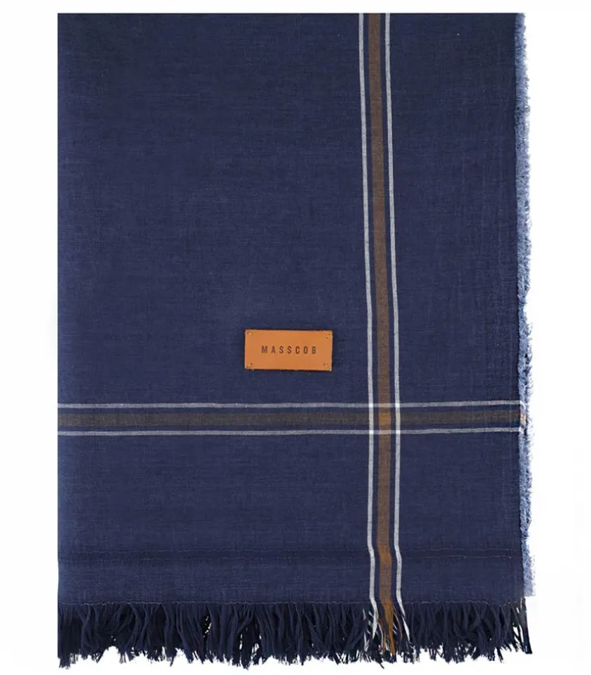 Pareo Lapaman Maritime De La Marque Masscob, Conçu En Mélange De Lin Et Coton, À La Fois Agréable Et Résistant. La Toile Bleue Marine Est Agrémentée D’Un Motif À Carreaux Fins En Teintes De Marron Et De Blanc.