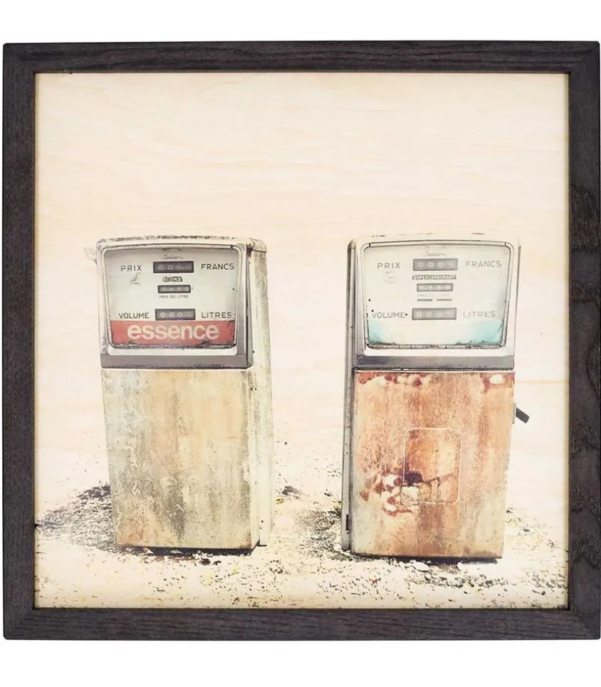 Poster En Bois De La Marque Woodhi, Imprimé D’Une Photo Argentique Représentant Une Station D’Essence Vintage.