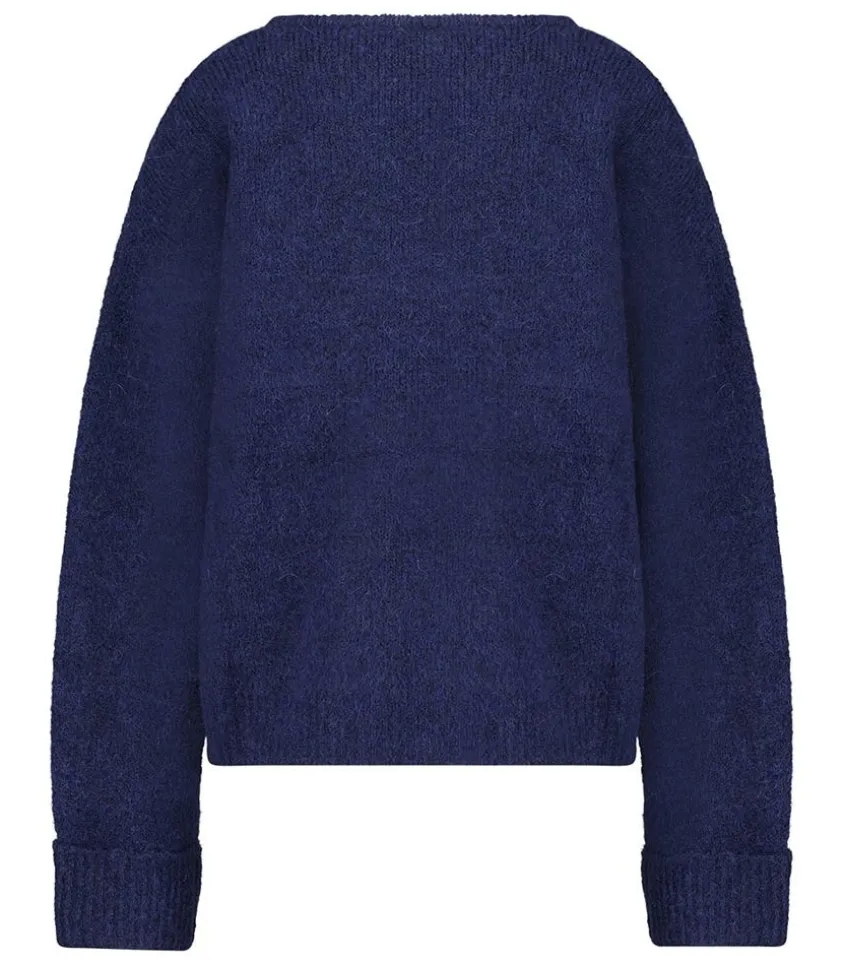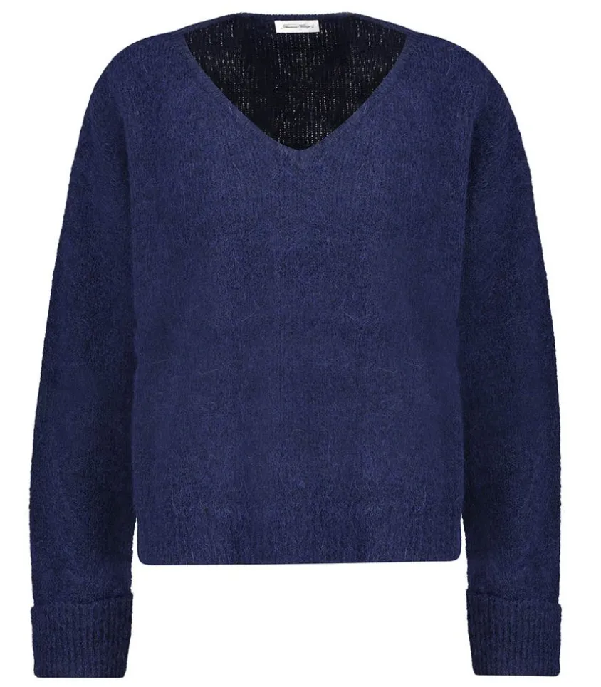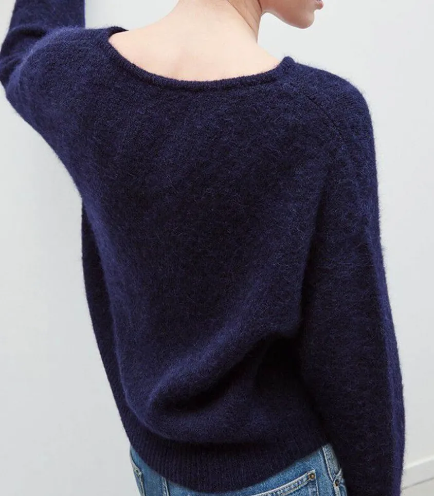 Pull East Navy Chiné De La Marque American Vintage, Un Véritable Must-Have De La Saison Doux Et Confortable. Dans Un Esprit Minimaliste, On L’Associe À Un Pantalon Beige Et À Une Paire De Baskets.