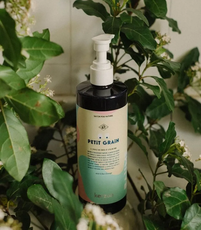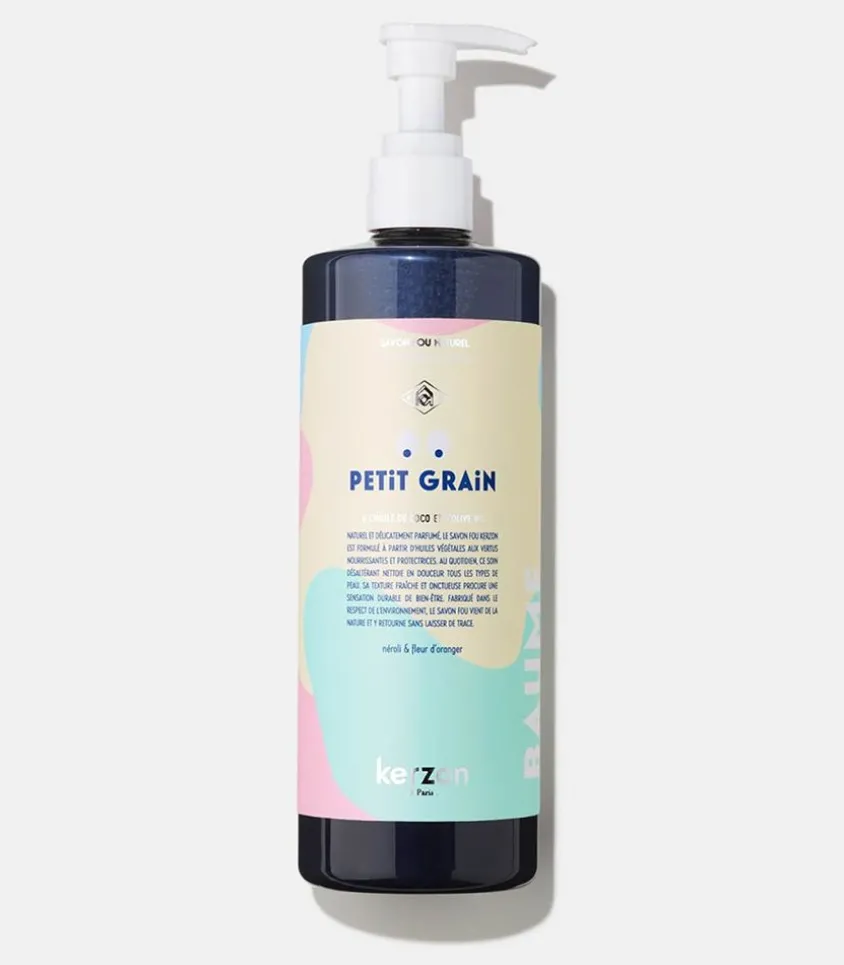 Savon Fou Naturel Petit Grain 500 Ml De La Marque Kerzon, Un Savon À La Formulation Nourrissante Et Protectrice Adaptée À Tous Les Types De Peau, Pour Nettoyer En Douceur Et Parfumer Délicatement Le Corps.