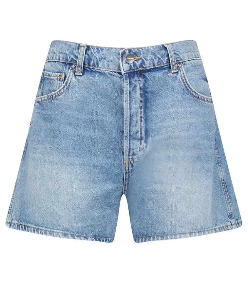 Short Dalton Pacific Blue Signé Anine Bing, En Denim Bleu Délavé Dans Un Esprit Vintage. Coupe Regular Et Taille Assez Haute.