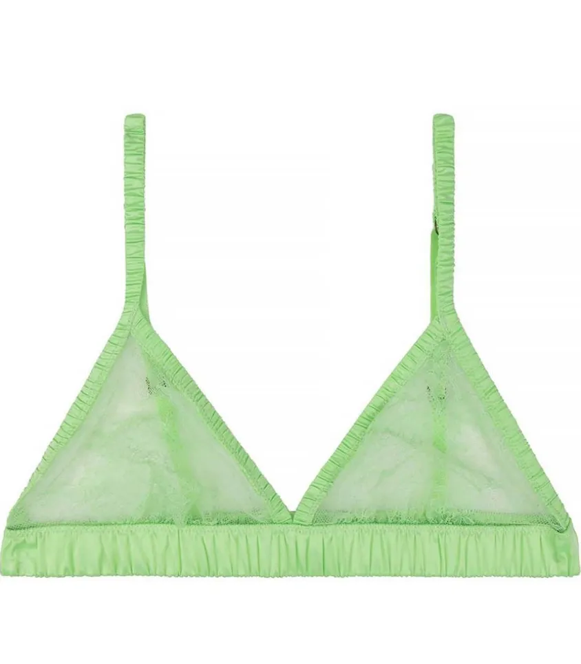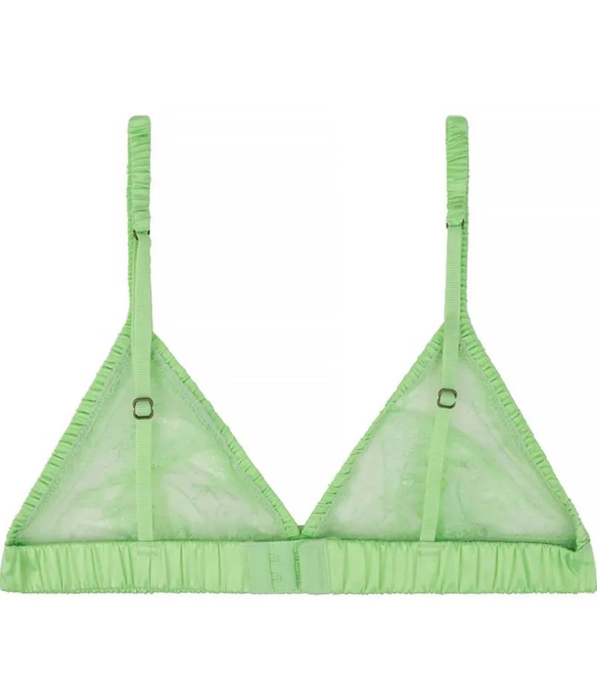 Soutien-Gorge Uma Lime De La Marque Love Stories, Une Bralette Triangle Au Doux Coloris Vert Citron, Conçu En Dentelle Extensible Douce À Motif Floral.