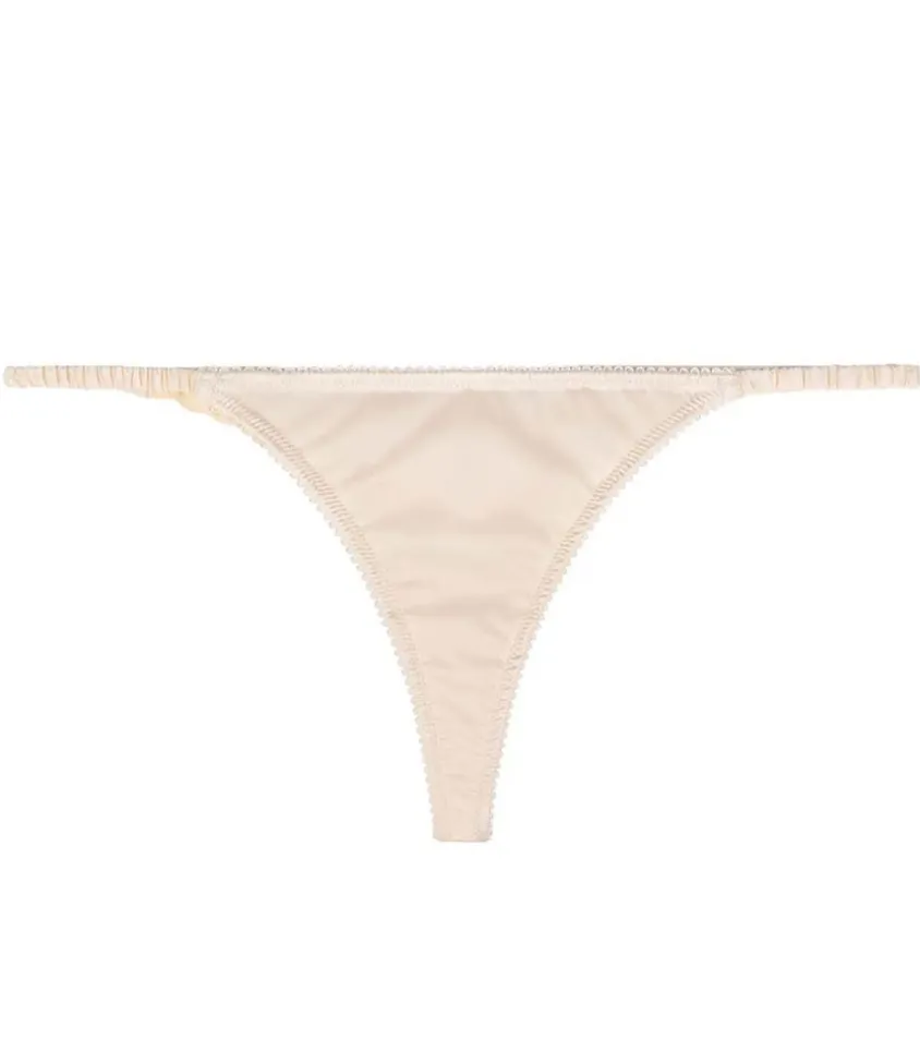 String Lily Off White De La Marque Love Stories, Un String De Couleur Blanc Cassé En Satin Doux Avec Une Brillance Moirée. Les Côtés Élastiques Sont Recouverts De Satin Froncé.