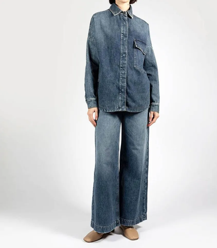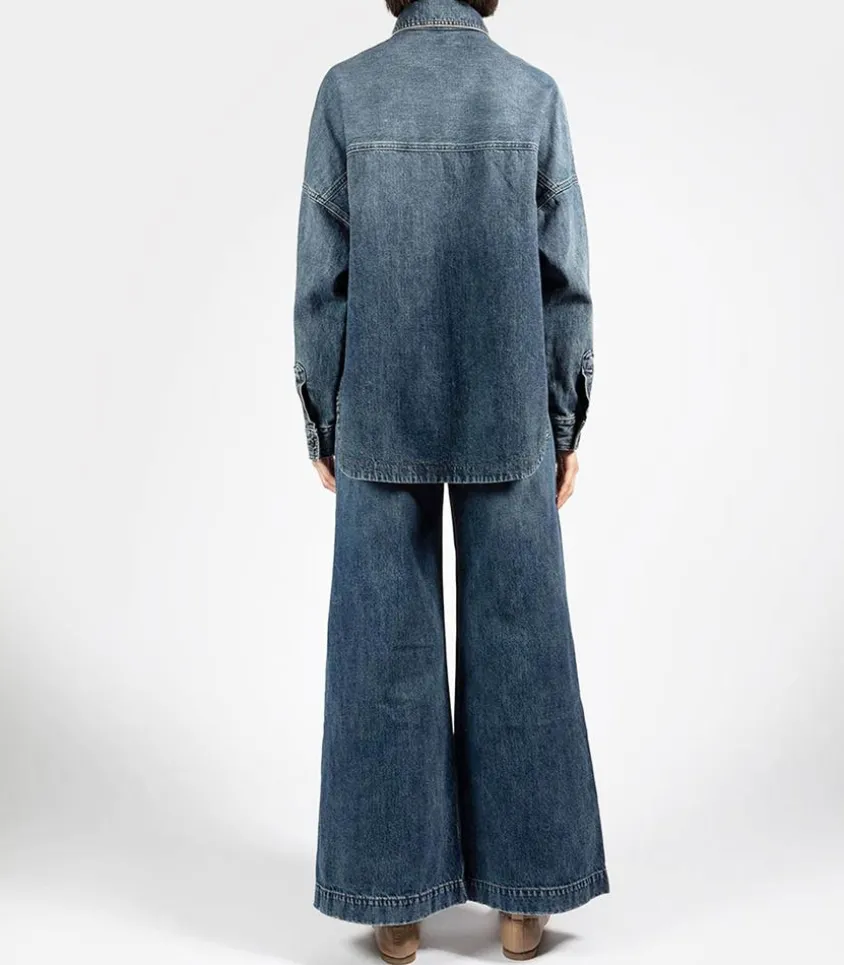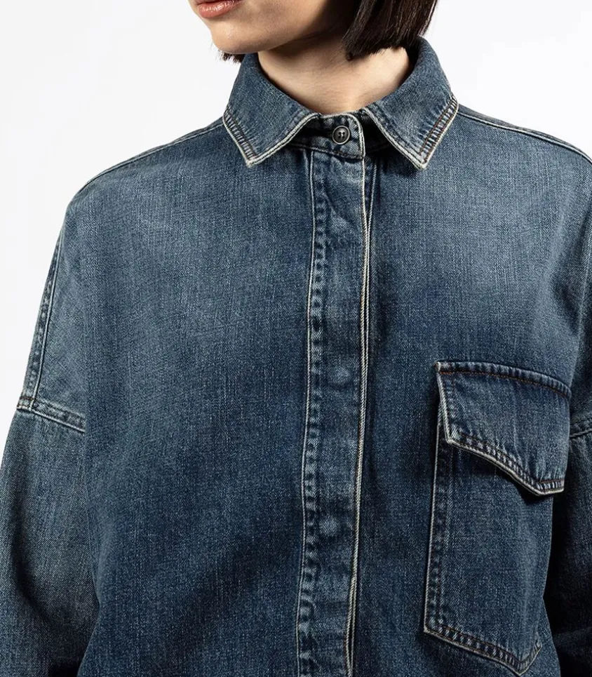 La Surchemise Rosa Bleu Foncée Incarne Le Style Décontracté Et Tendance Avec Sa Coupe Oversize Et Son Denim Authentique Au Délavage Moyen. Dotée D’Une Poche Plaquée Pratique À L’Avant, Elle Offre À La Fois Fonctionnalité Et Esthétique. Sa Fermeture Boutonnée Dissimulée Ajoute Une Touche De Sophistication À Son Allure Décontractée. Idéale Pour Créer Un Total Look Denim.