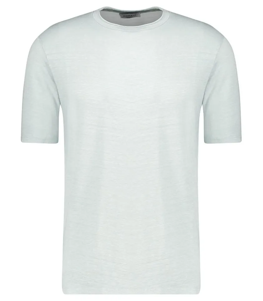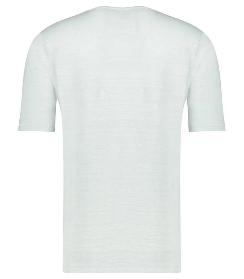 Tee-Shirt En Lin Pour Homme De La Marque Wool&Co, Au Doux Coloris Bleu Cristal. Matière Respirante Et Fluide Pour Ce Modèle Qui Se Porte Tout Au Long De L’Année, Avec Un Jean Et Une Paire De Baskets.