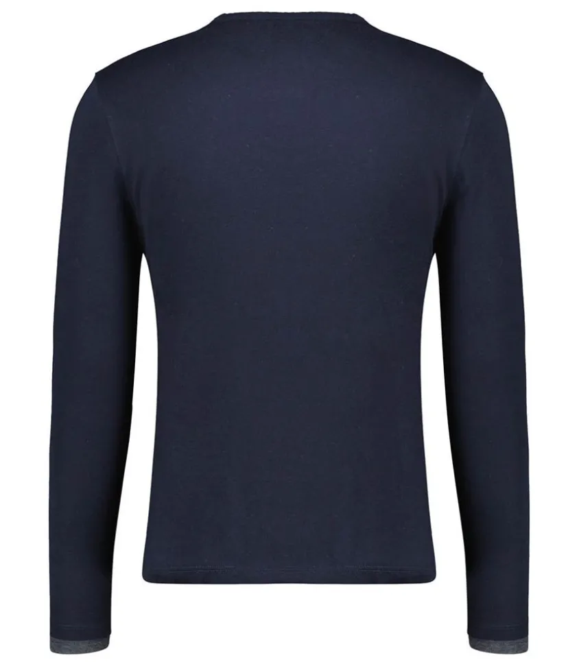 Tee-Shirt Homme Col Rond Manches Longues Coton Marine. Véritable Incontournable Du Dressing Homme. Se Porte Facilement À Toutes Les Saisons, Seul Ou Accompagné D’Un Pull.