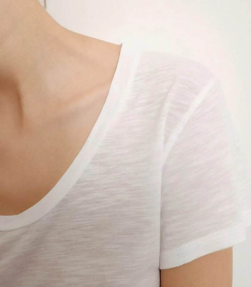 Tee-Shirt Basic American Vintage, Modèle Jacksonville À Manches Courtes, Coupe Ample Et Encolure En U. On Le Porte Simplement Avec Un Jean Et Des Boots Pour Une Allure Casual.