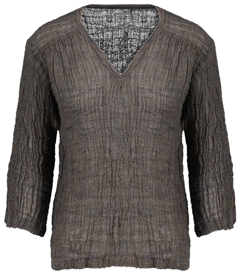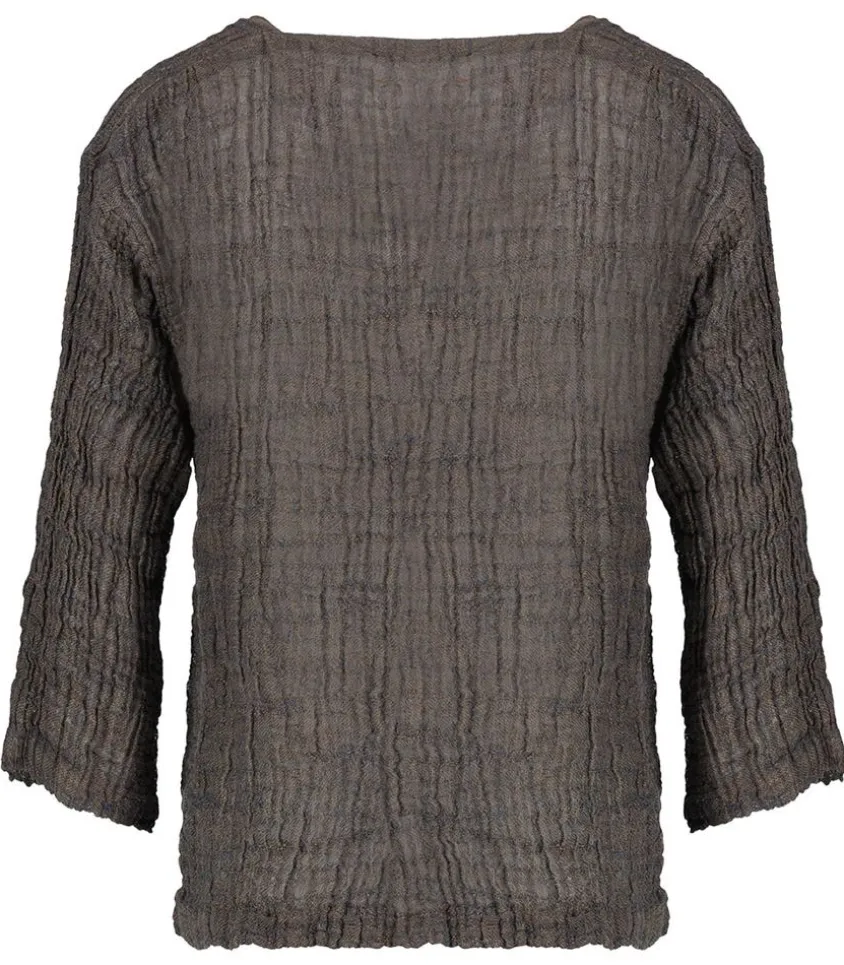 Top Roya Midnight De La Marque Masscob, En Lin Froissé De Coloris Mêlant Brun Et Bleu Nuit.