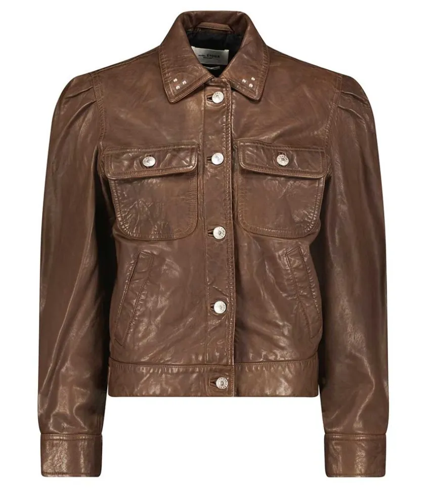 Veste En Cuir Bering Signé Isabel Marant Étoile, Interprétation Moderne D’Une Veste En Cuir Dans Un Coloris Dark Khaki, Réhaussé D’Épaules Arrondies Dotées De Plis Afin D’Apporter Structure Et Volume. Une Pièce De Caractère.